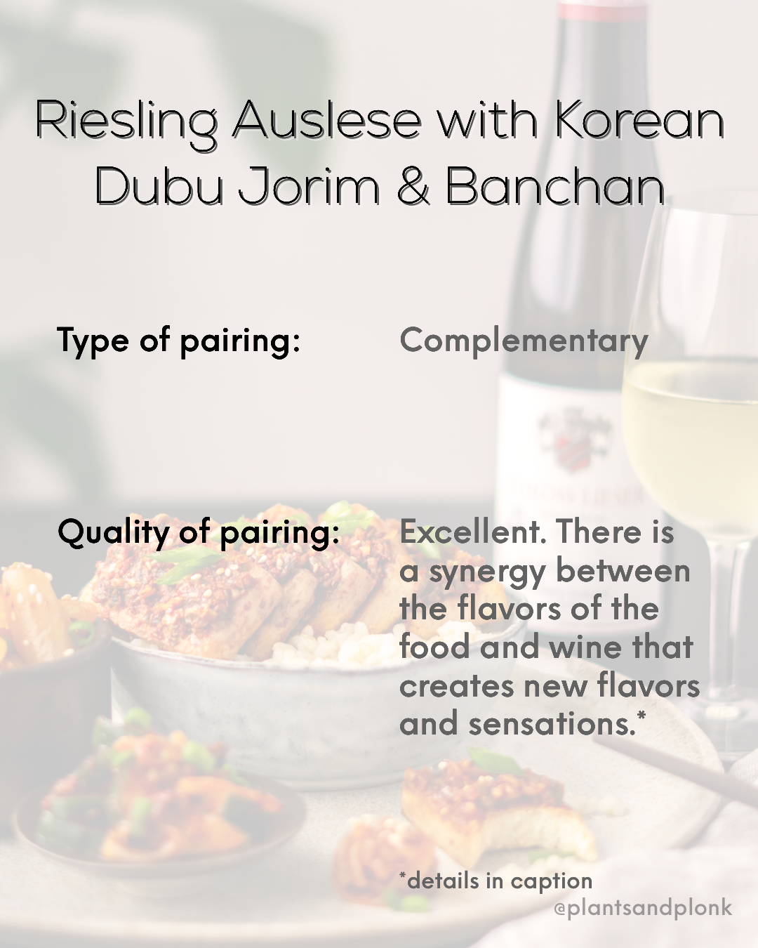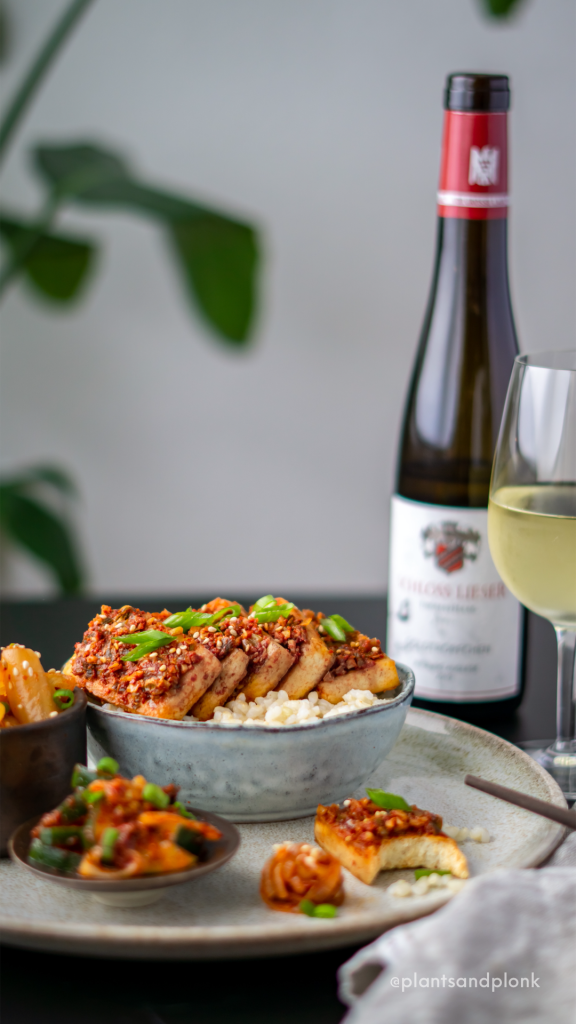 So even before I got my hands on this Auslese, I was already thinking “what Korean dish would this work with?” And I couldn’t stop my mind from wandering to my all-time favorite tofu recipe: dubu jorim (traditionally a banchan side dish, but I made it the star). See more about banchan at the end of this post.