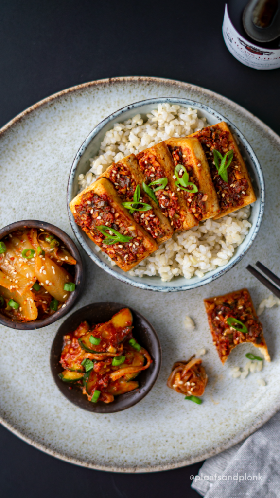 Thank goodness for Seonkyoung Longest. I was a fan of her YouTube channel even before she went plant-based and after that, I launched into full on superfan. The dubu jorim recipe is hers (well actually, her mom’s) and I follow it exactly every time I make it. Her recipe is not quite as saucy as other versions and I’m obsessed with it. If you prefer to watch a video of Seonkyoung and her mother making it in action, check out the youtube video: “Korean Tofu Jorim Spicy Braised Tofu.”