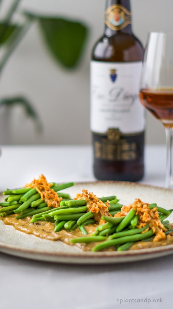 Confession: I initially planned to pair this wine with vegan “chicken” pot pie. In my omnivorous, gluten-full days, I attempted the pairing and loved it so much. More recently, I spent hours researching and trying to reincarnate the dish in vegan gluten free form. I tried twice to make the pies, and the filling was generally pretty good, but the gluten-free crust left much to be desired. My last attempt was for Thanksgiving. It was pretty good. I even took pictures of it and planned to sort of shrug it off as one of the recipes on this account that are still in progress.