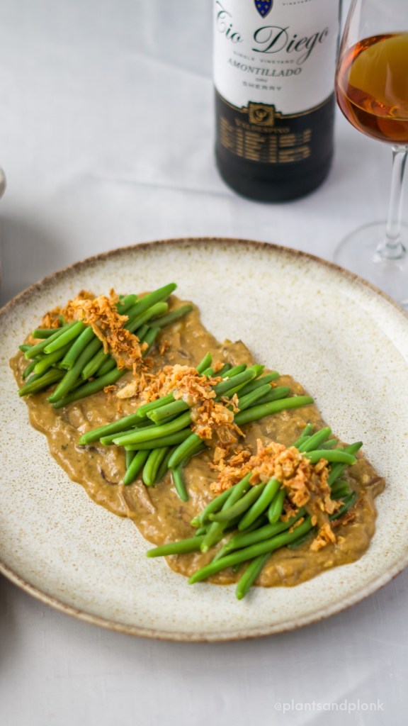 But at that meal, I tried the amontillado with everything else, including my favorite holiday side, green bean casserole. The sherry was probably the best all around meal pairing I’ve had in a long time (note to self, bring an extra bottle of sherry to all holiday dinners). It played nicely with everything we ate, but it was absolute dynamite with the green bean casserole.