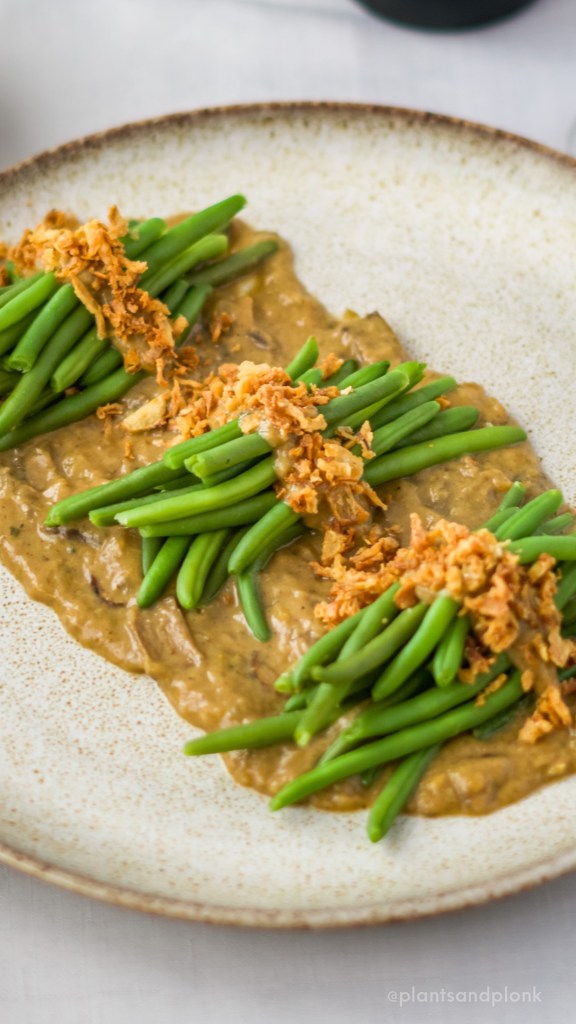 This was my absolute favorite holiday dish growing up. We always had green bean casserole for both Thanksgiving and Christmas. It’s simply the best. The preparation I remember from my childhood, though, leaves much to be desired (no offense, mom); it consists of canned beans, canned cream of mushroom soup and French’s fried onions. This version is a barely recognizable version of that one, but it’s still the most delicious and nostalgic thing on my table – holiday or otherwise.